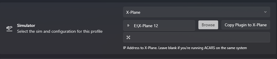 • Automaticamente, aprendo l'ACARS e selezionando nella pagina delle impostazioni sul menu Simulator X-Plane sarà possibile installare in maniera automatica il plugin. Vi basterà selezionare la cartella nella quale è installato XPlane premendo il tasto "Browse" e successivamente premere il tasto "Copy Plugin to X-Plane Folder"