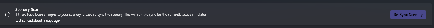 Una volta fatto questo per completare l'installazione bisogna fare il Sync degli scenari del simulatore. Per far questo premi il tasto "Re-Sync Scenary"