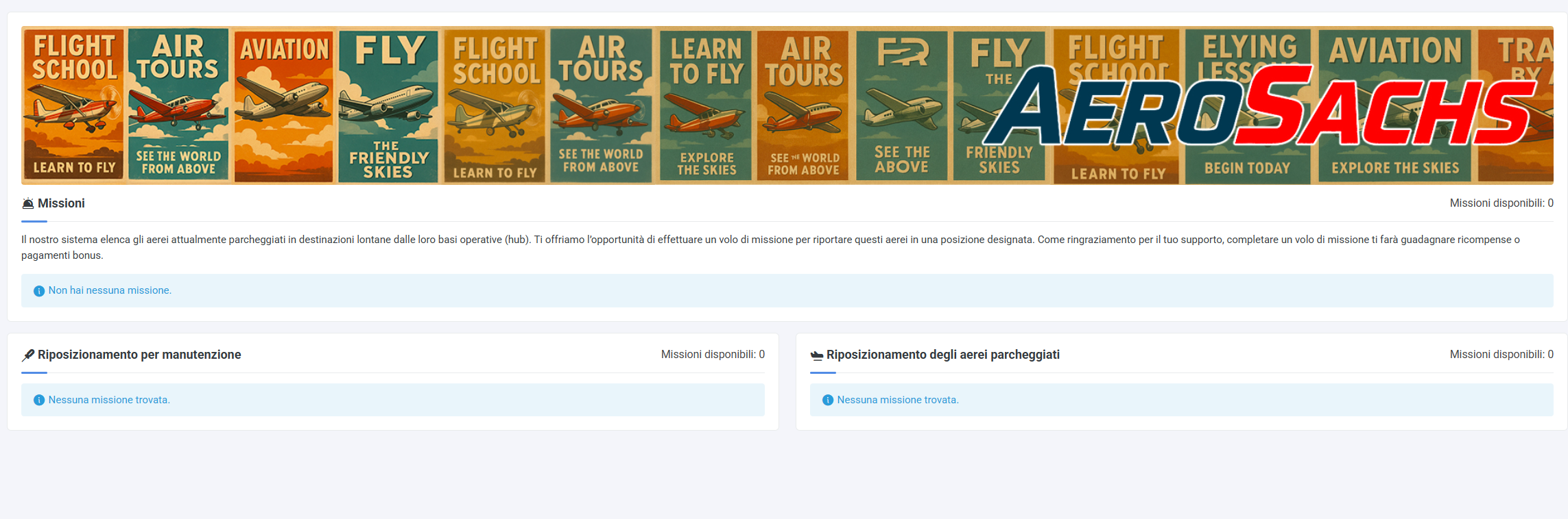 Simili alle assegnazioni le missioni sono voli generati in automatico dal sistema con lo scopo di riportare ai propri hub aerei parcheggiati in altri aeroporti o che necessitano di manutenzione. Come per le assegnazioni al completamento di una missione vi verrĂ assegnato un bonus pari al 10% del pagamento.